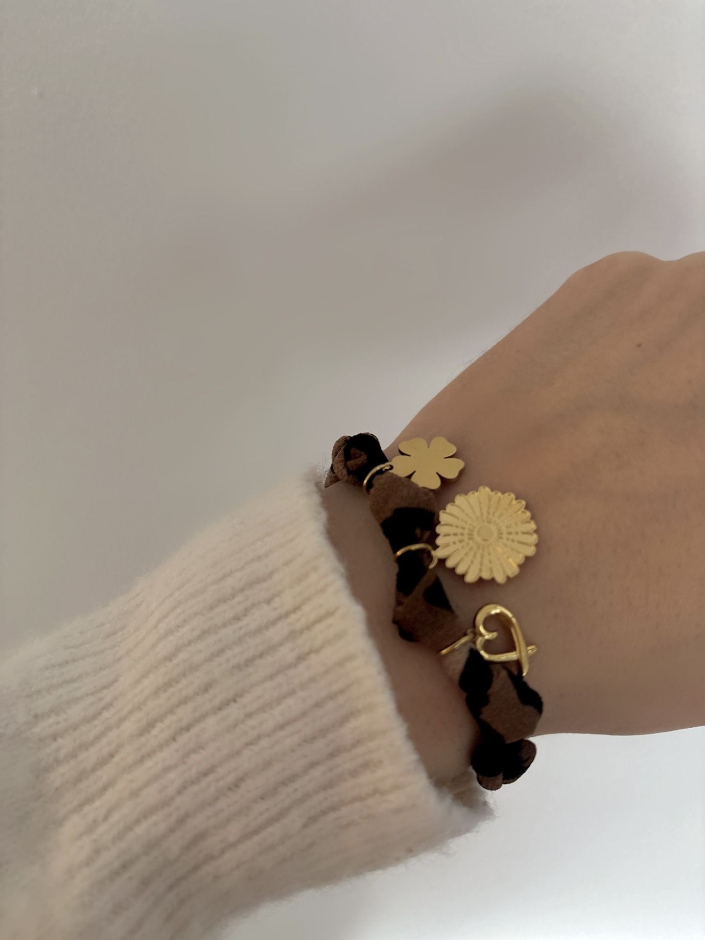 - Bracelet en tissu avec breloques en Acier inoxydable (dorure de qualité PVD, contient des traces d'or 18k)